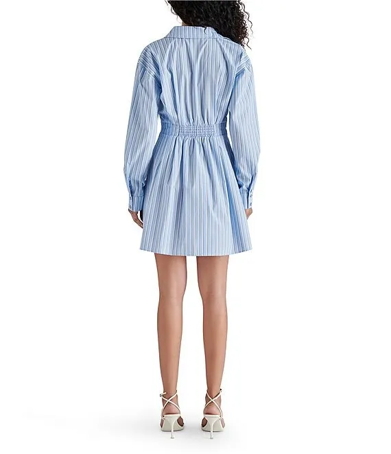 Aria Stripe Print Point Collar Corset Waist Long Sleeve A-Line Mini Dress