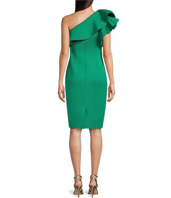 Stretch Scuba Ruffle One Shoulder Sleeveless Sheath Dress