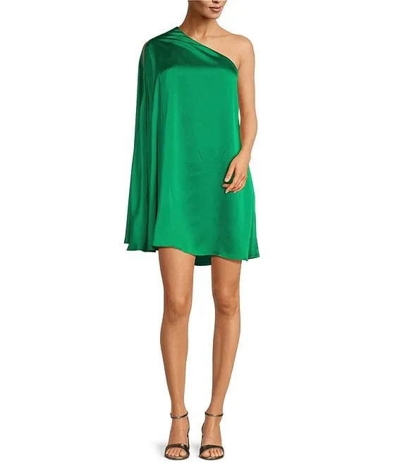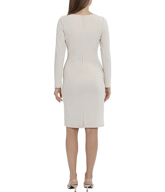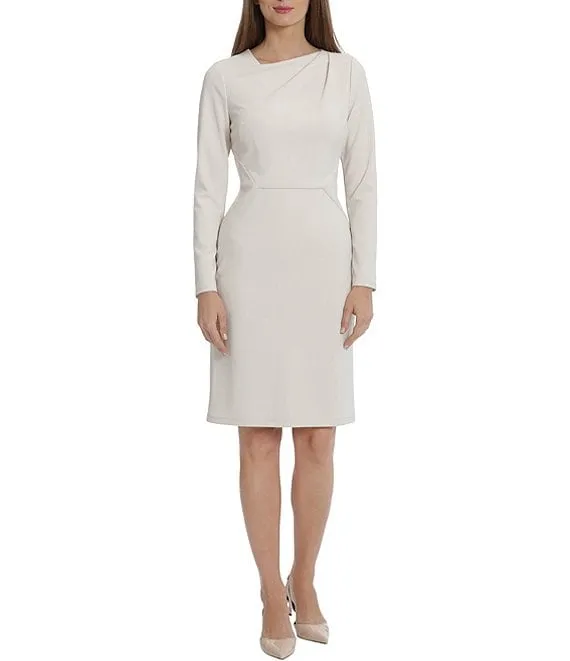 Stretch Crepe Asymmetrical Square Neckline Long Sleeve Dress