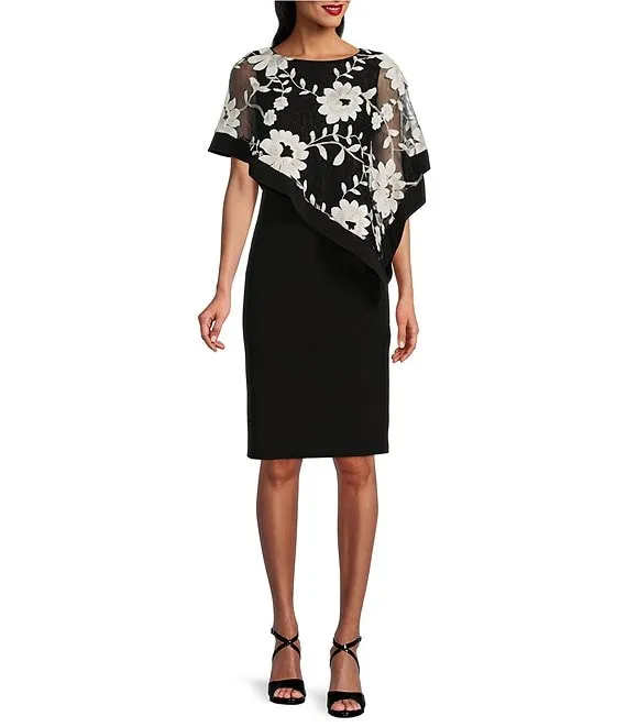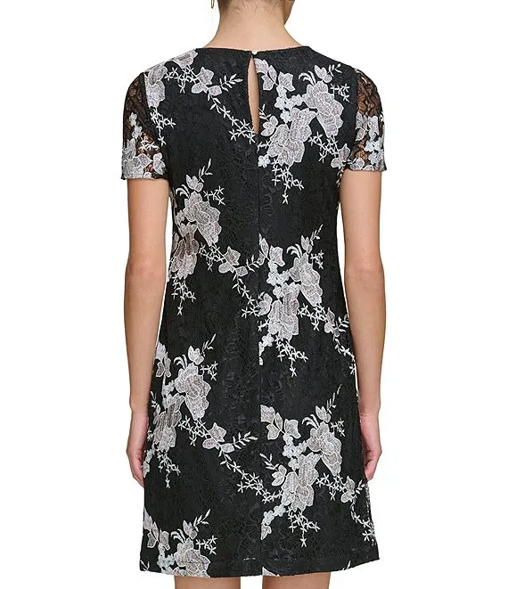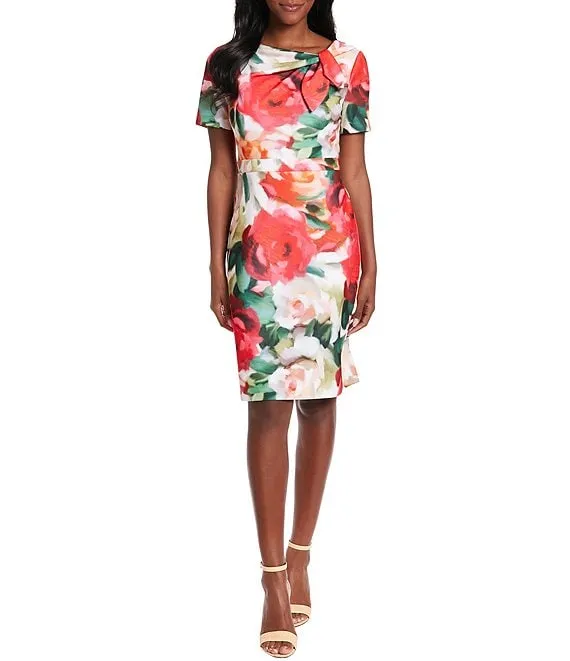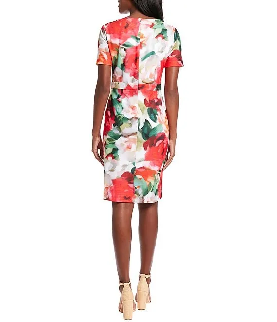 Short Sleeve Crew Neck Floral Sheath Dress