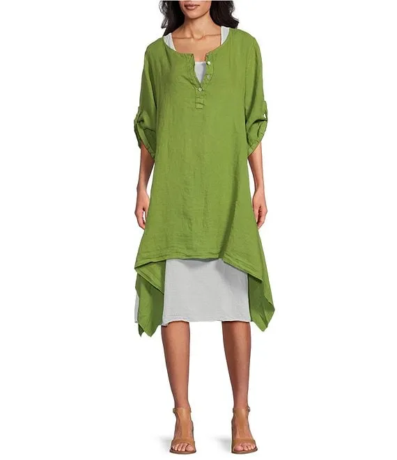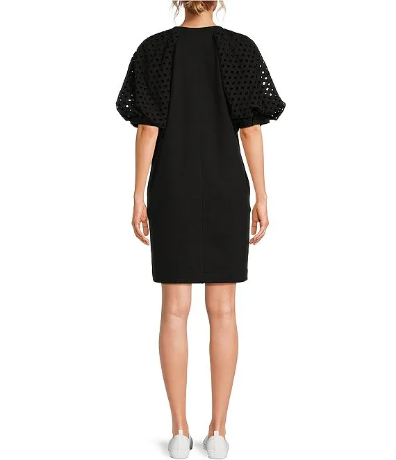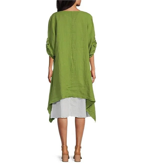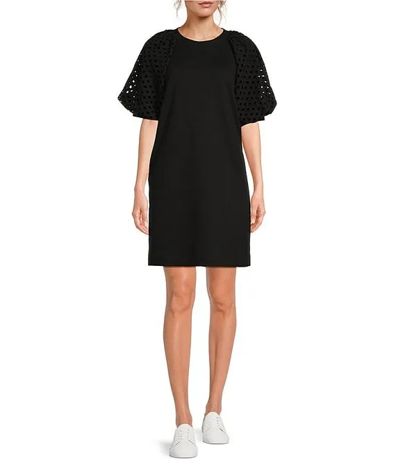 M Made In Italy Round Neckline Short Roll Up Sleeve Dress