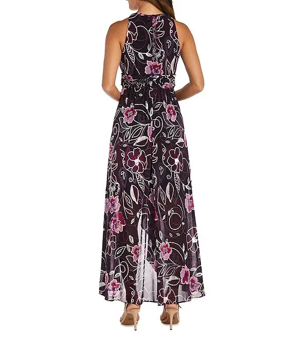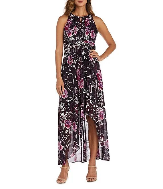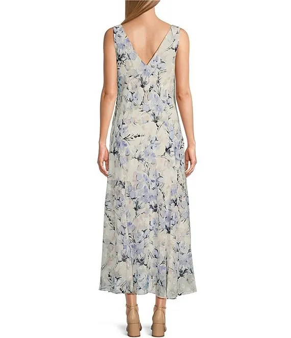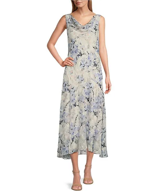 Sleeveless Cowl Neck Floral Midi Length Dress