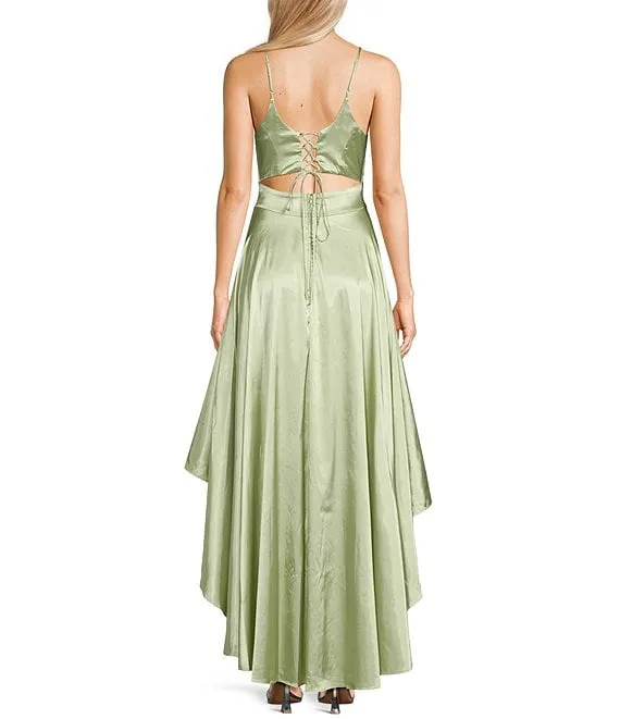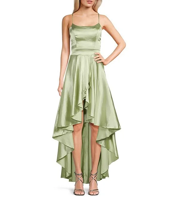 Sweetheart-Neck High-Low Fit-And-Flare Taffeta Dress