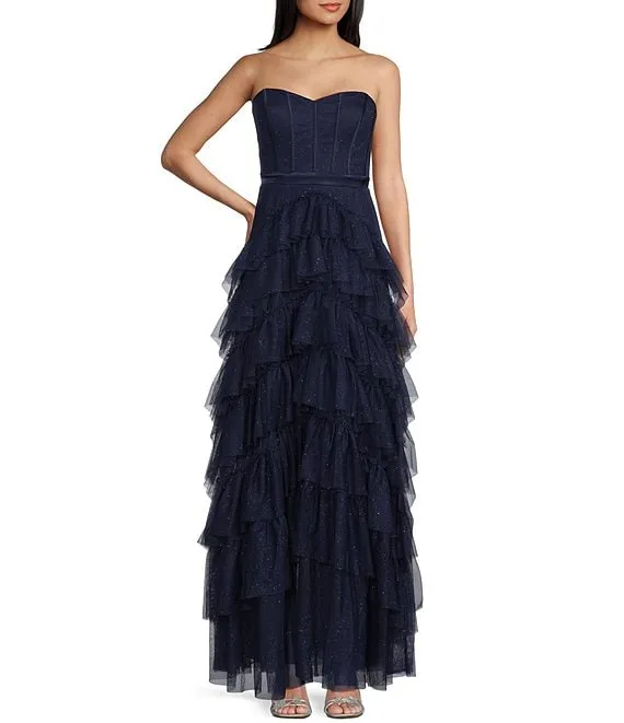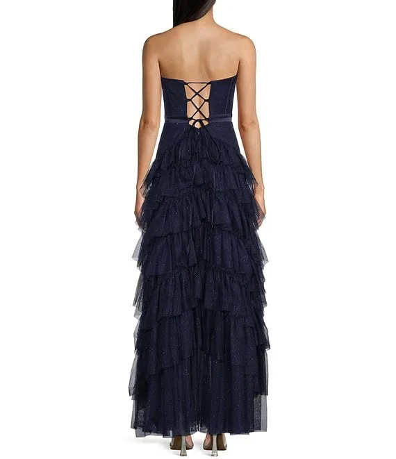 Strapless Lace-Up Back Tiered Dress