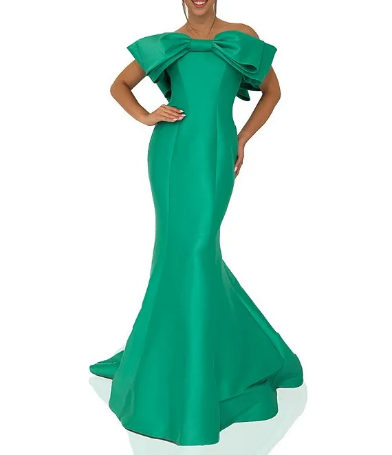Bow Front Off the Shoulder Sleeveless Mermaid Gown