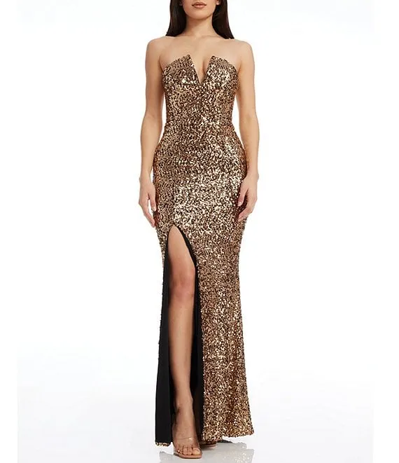 Fernanda V-Neck Sequin Strapless Gown