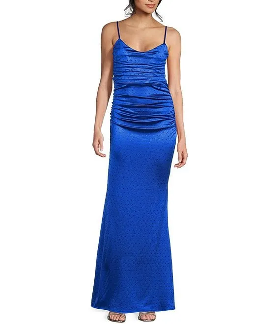 Rhinestone Scoop Neck Open Back Long Dress