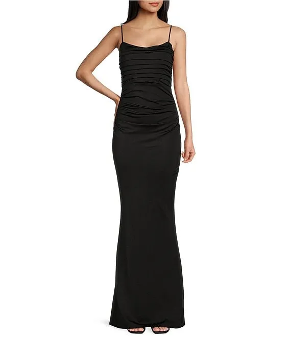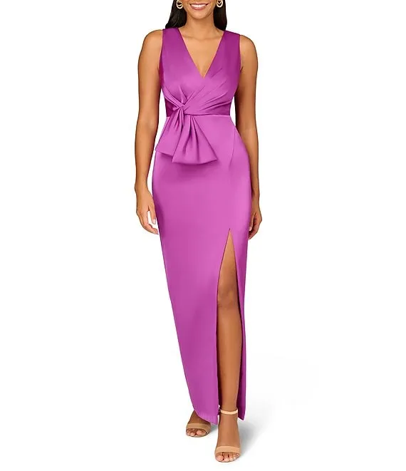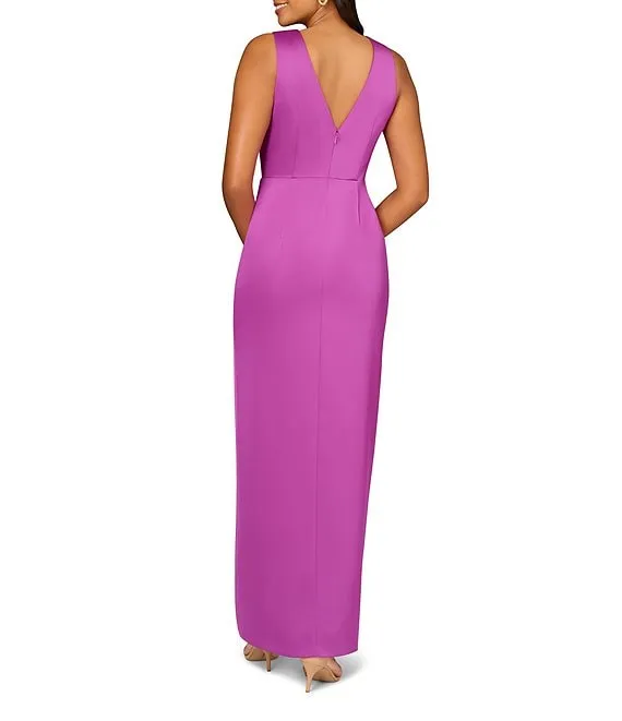 Satin V-Neckline Sleeveless Pleated Twist Waist Gown