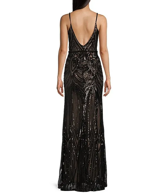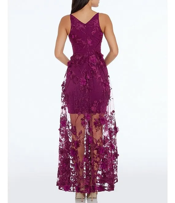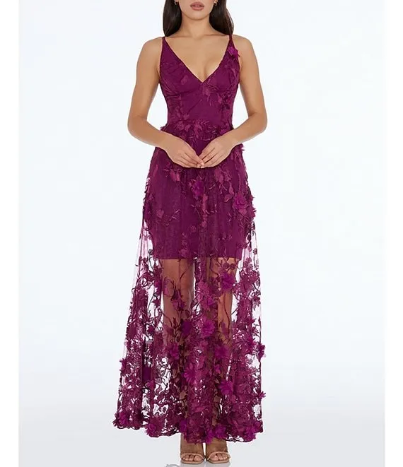 Sidney 3D Floral Plunging V-Neck Sleeveless Maxi Dress