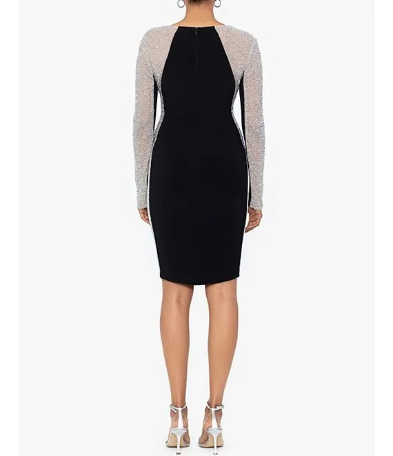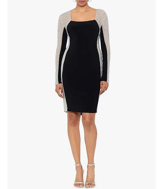 Stretch Square Neckline Beaded Long Sleeve Bodycon Dress