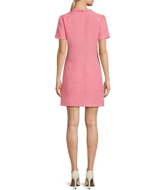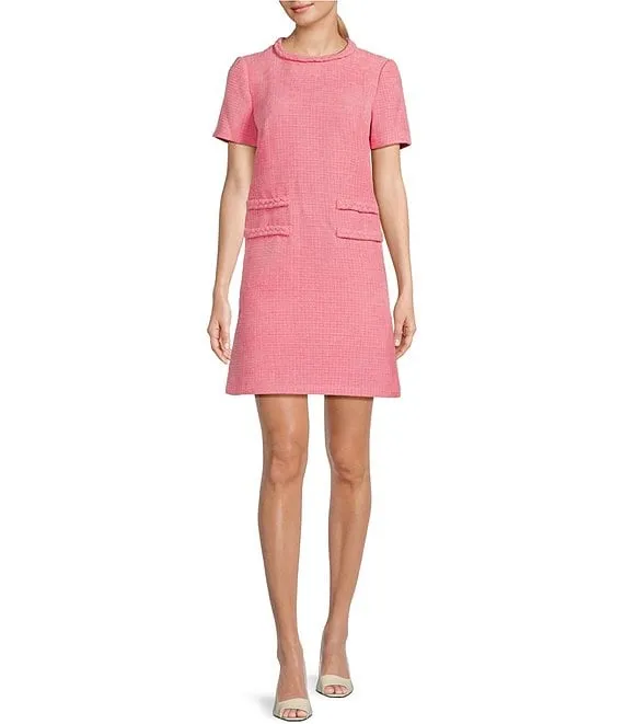 Boucle Braided Trim Round Neck Short Sleeve Shift Dress