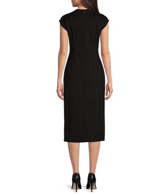 Calvin Klein Ponte Round Neck Cap Sleeve Sheath Dress