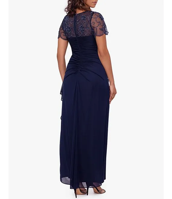Illusion Boat Neck Short Sleeve Gown