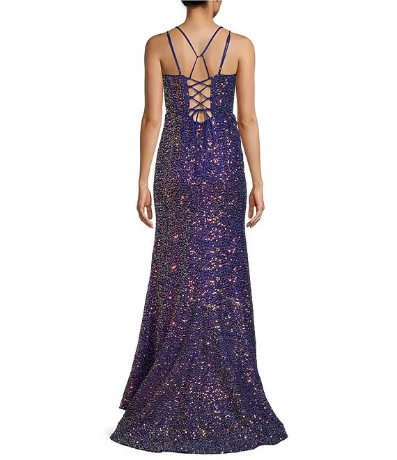Glitter Shine Corset Sleeveless Long Dress