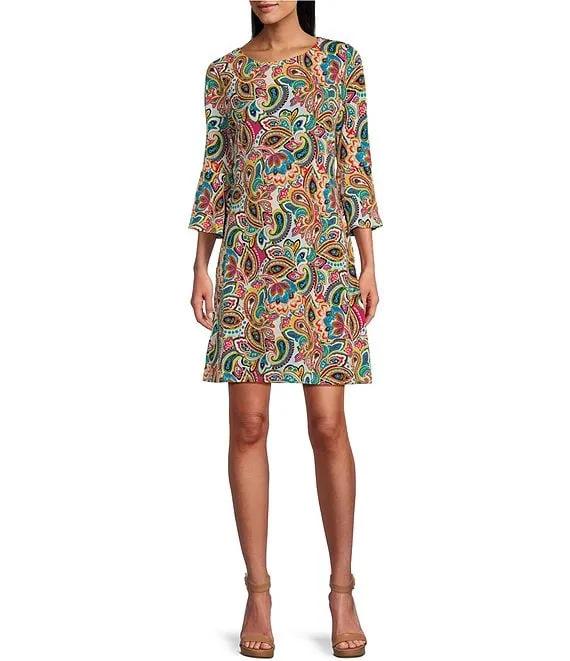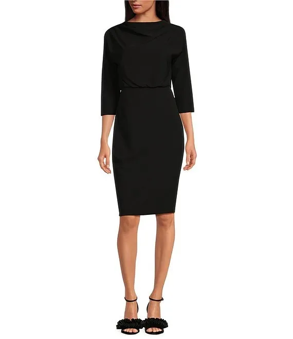 Draped Boat Neck 3/4 Sleeve Blouson Dress
