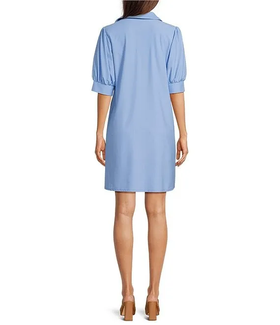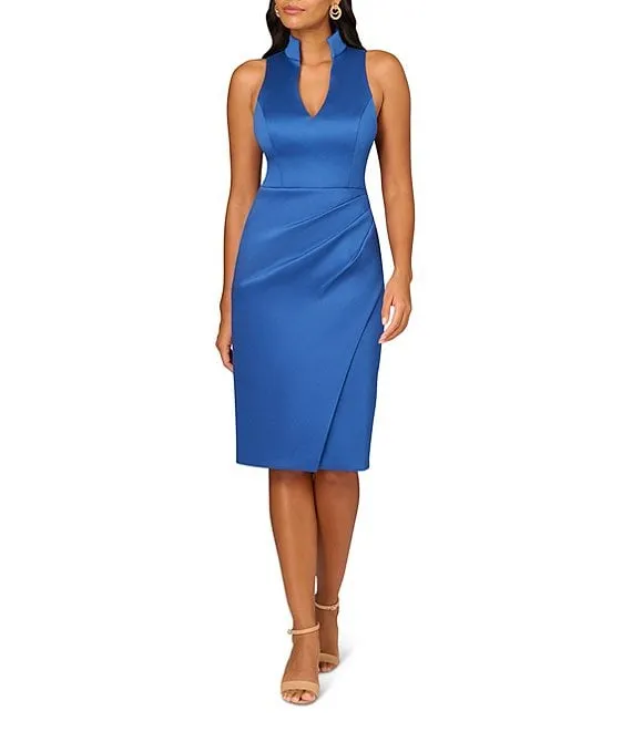 Adrianna Papell Knit Crepe Pearl Trim Short Tulip Sleeve V-Neck Front Slit Sheath Dress