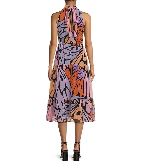 Printed Butterfly Mock Neckline Sleeveless Dress