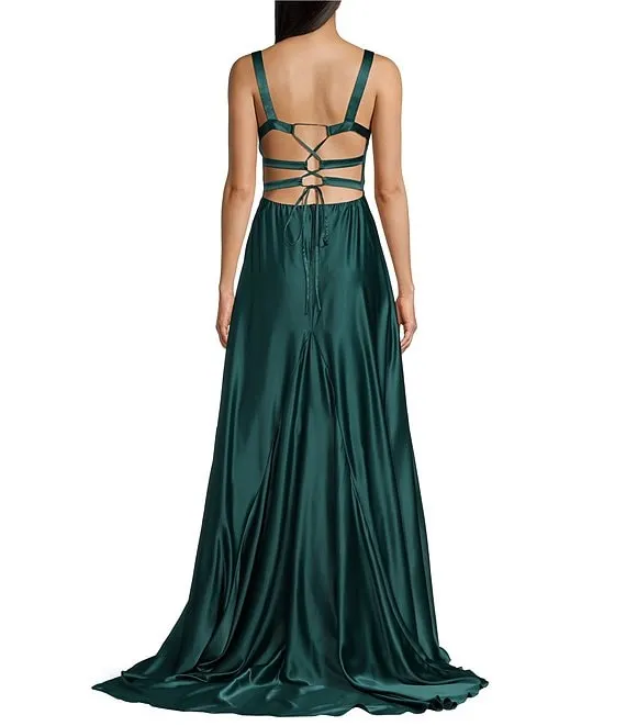Lace-Up Back Front Slit Long Dress
