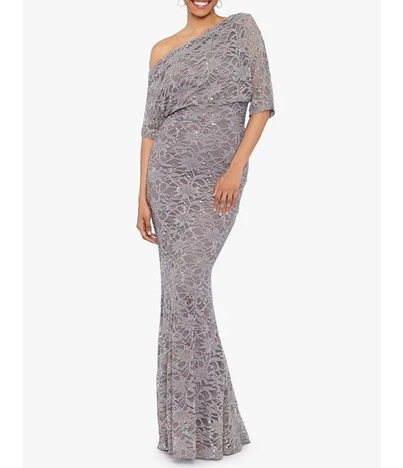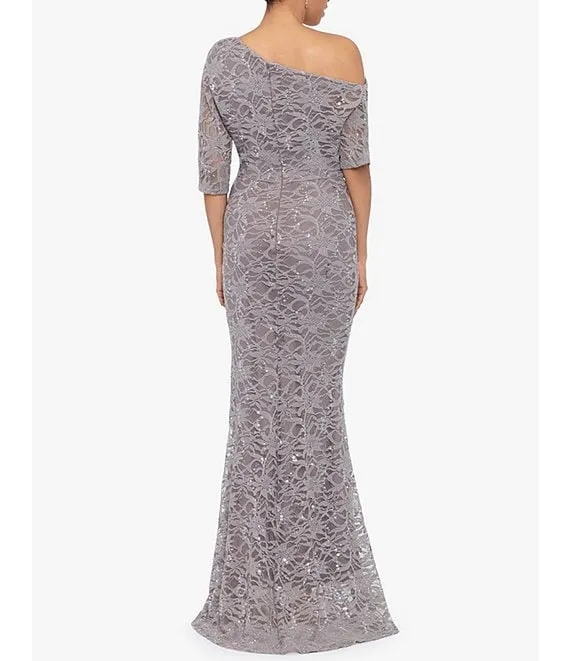 Stretch Lace Off the Shoulder 3/4 Sleeve Gown