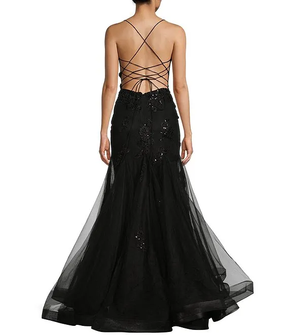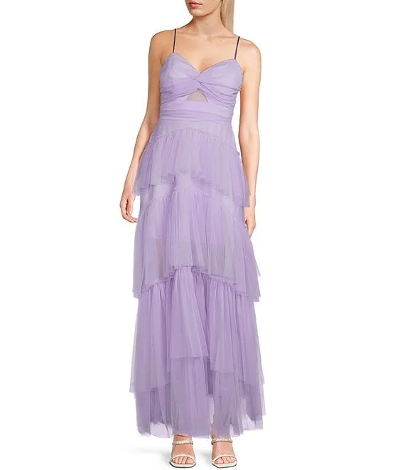 Twist Front Cut-Out Tiered Tulle Long Dress