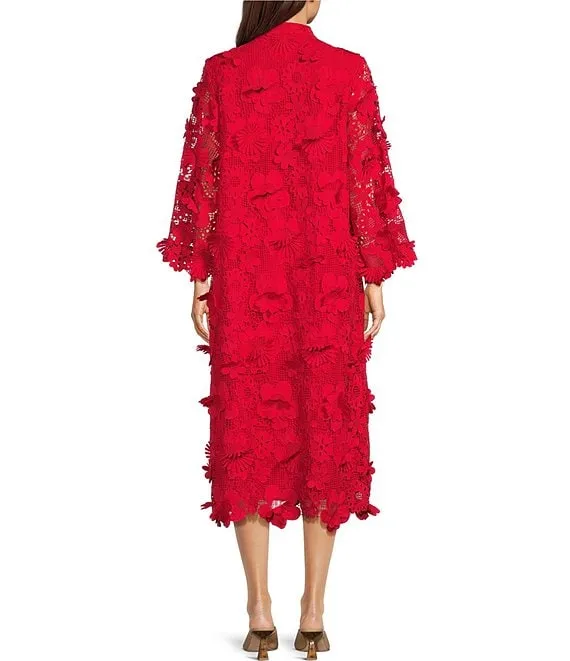 Seraphina Floral 3D Lace Split V Button Up Long Sleeve Shift Dress