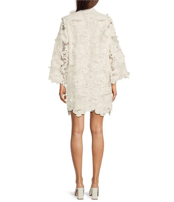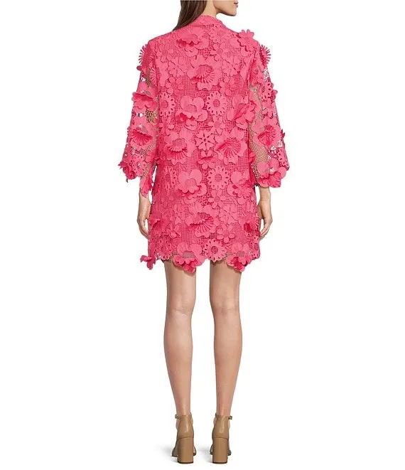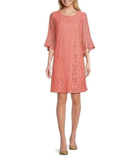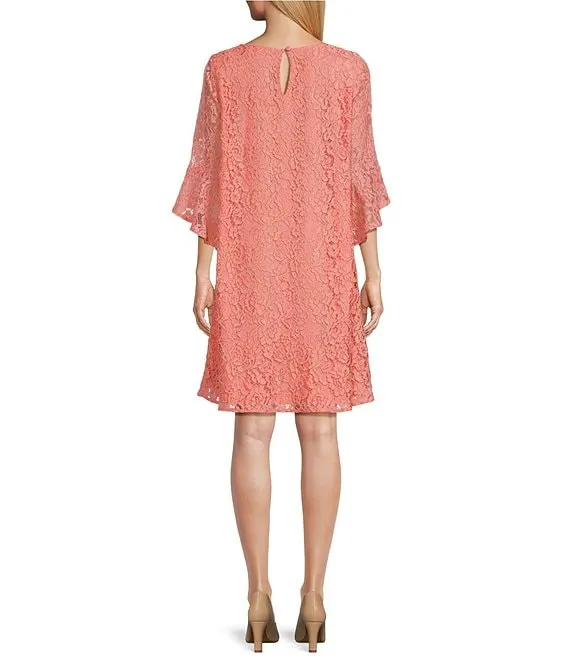 Julia Floral Lace Round Neck 3/4 Ruffled Bell Sleeve Shift Dress