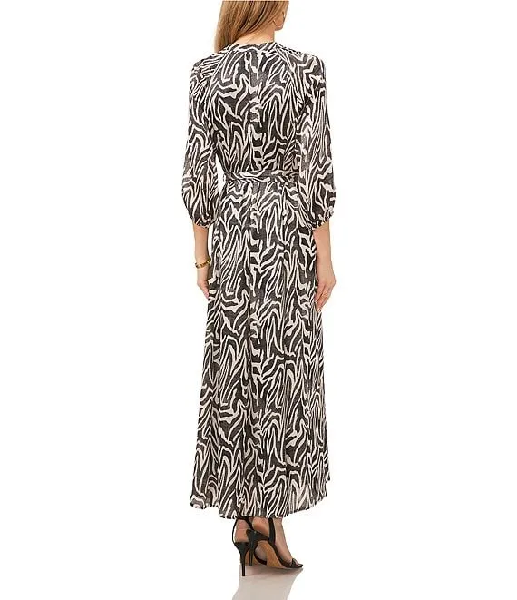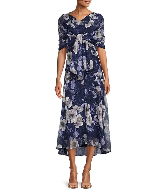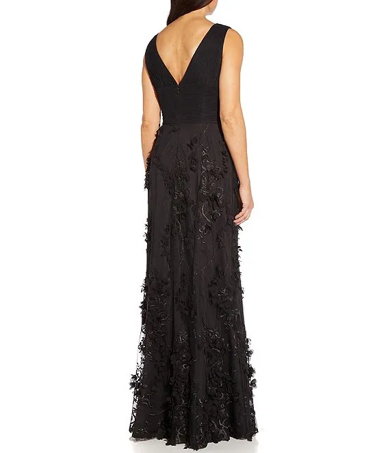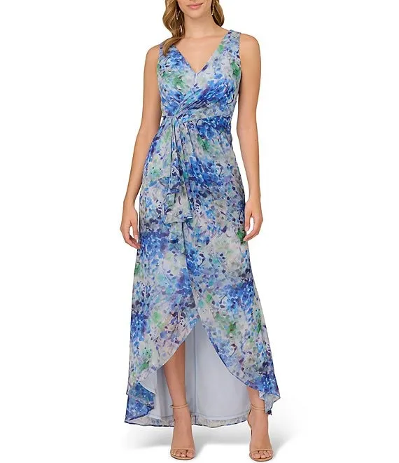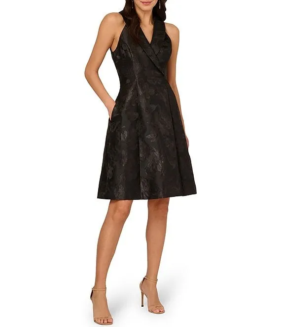 Adrianna Papell Printed Jacquard Surplice V-Neck Sleeveless Fit and Flare Tuxedo Dress