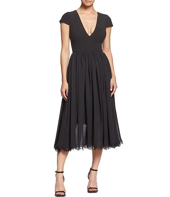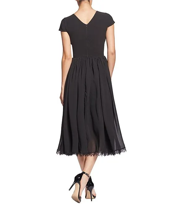 Corey V-Neck Cap Sleeve Lace Hem Dress
