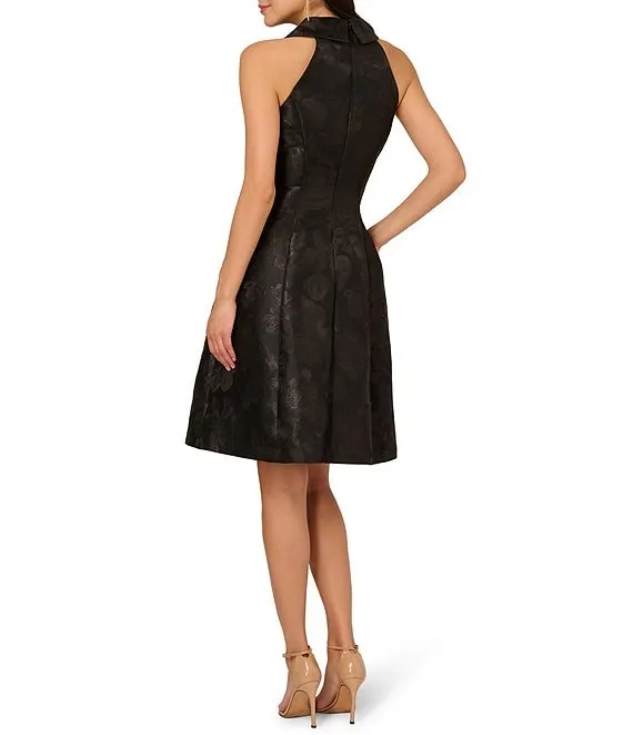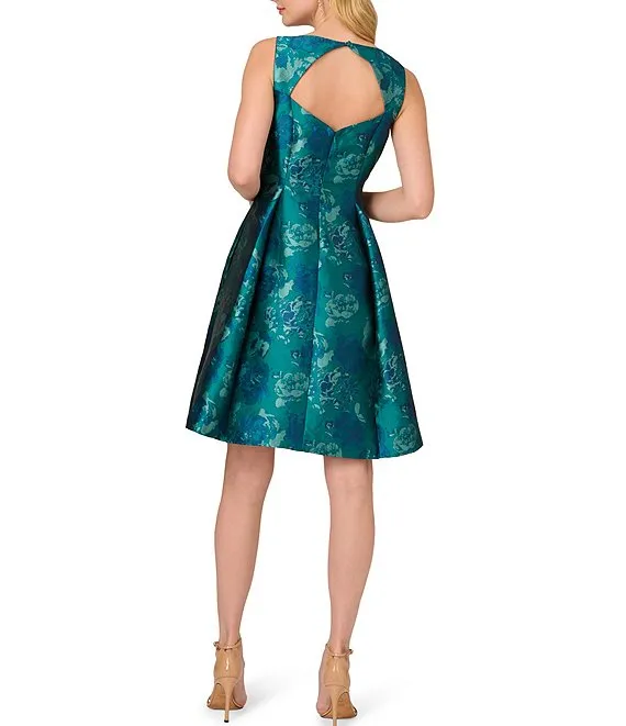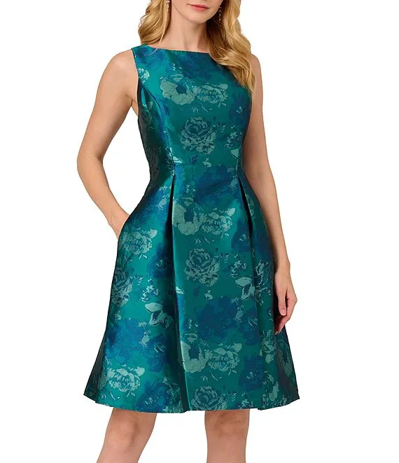 Adrianna Papell Floral Jacquard Boat Neck Sleeveless Fit and Flare Midi Dress