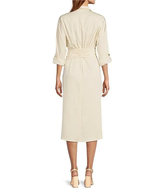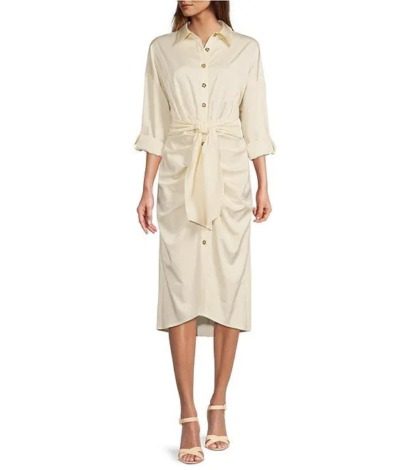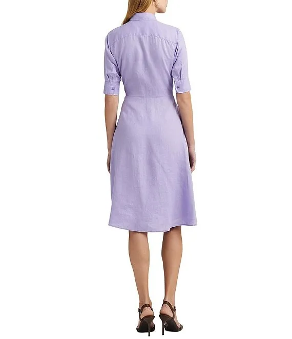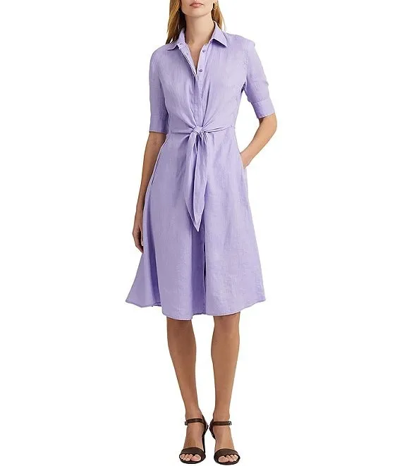Lauren Ralph Lauren Linen Tie Waist Point Collar Button Down Shirt Dress