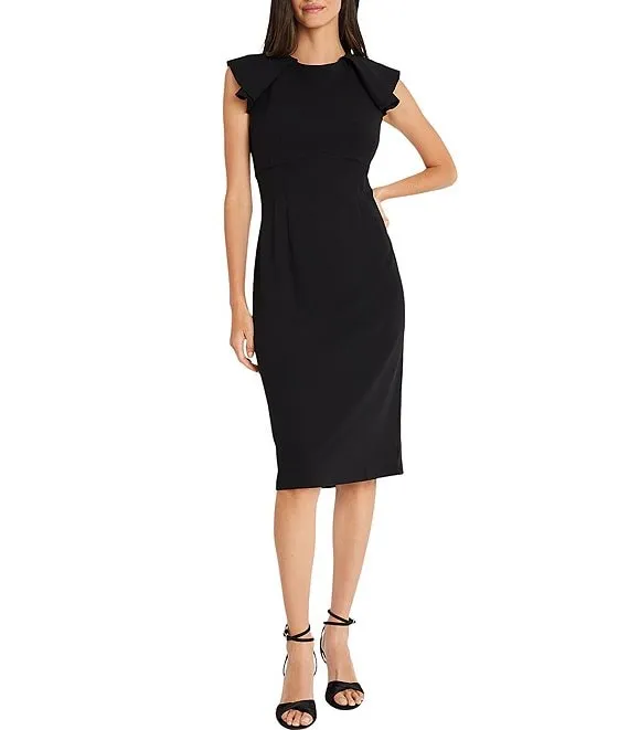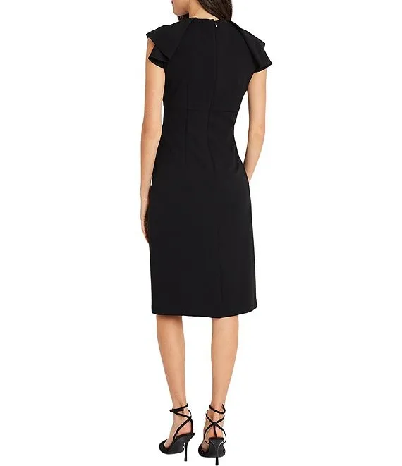 Stretch Ruffle Cap Sleeve Sheath Dress