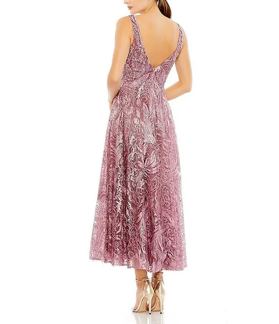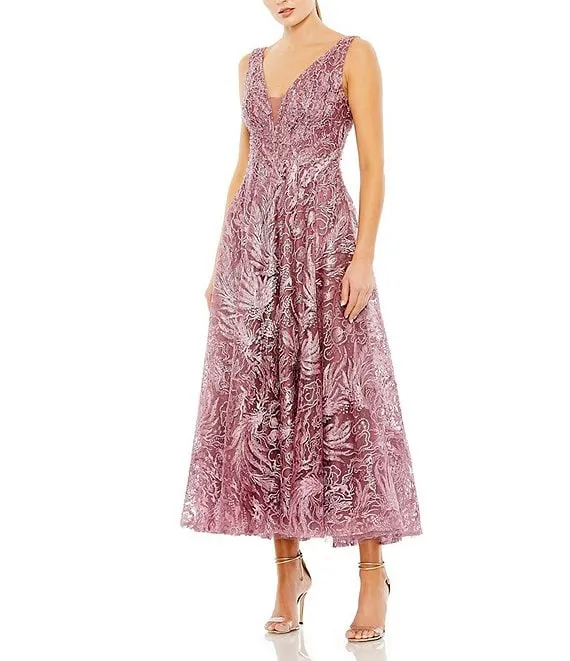Mac Duggal Embroidered V-Neck Sleeveless Dress