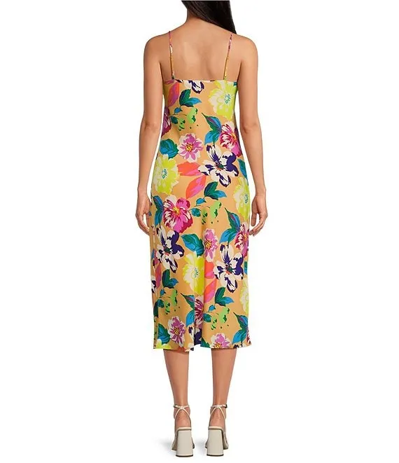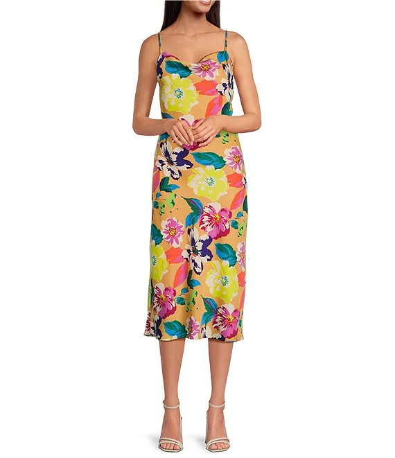 Floral Print Cowl Neck Sleeveless Midi Dress