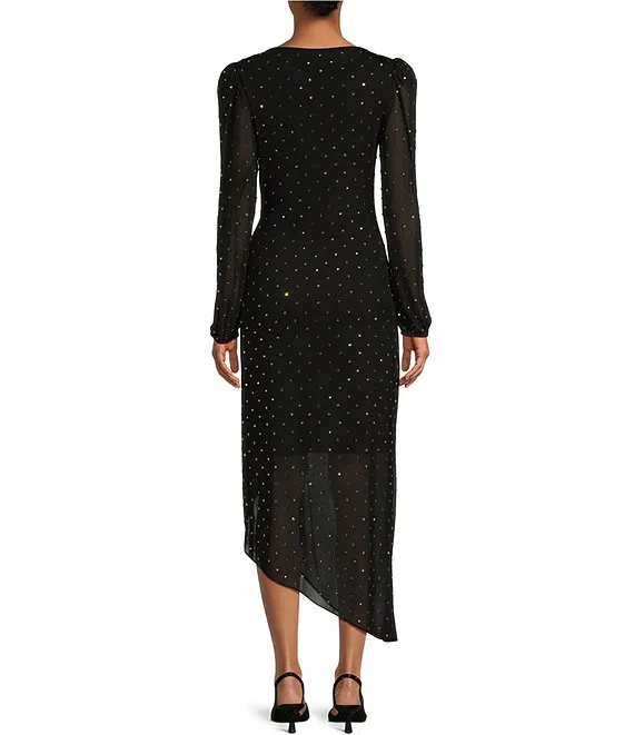 Hazel Beaded Mesh Boat Neck Long Sleeve Dress