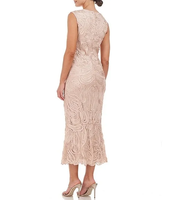 Embroidered Soutache Lace Round Neck Sleeveless Mermaid Midi Dress