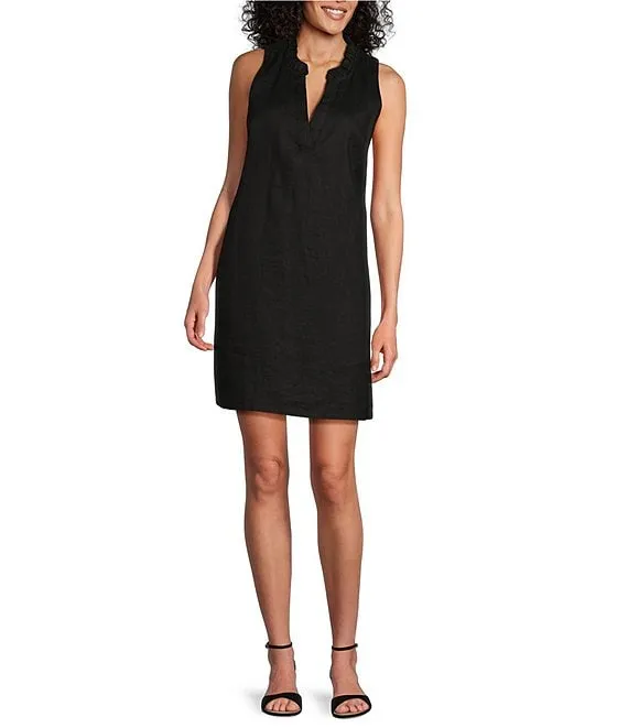 Ruffle Split V Neckline Sleeveless Dress