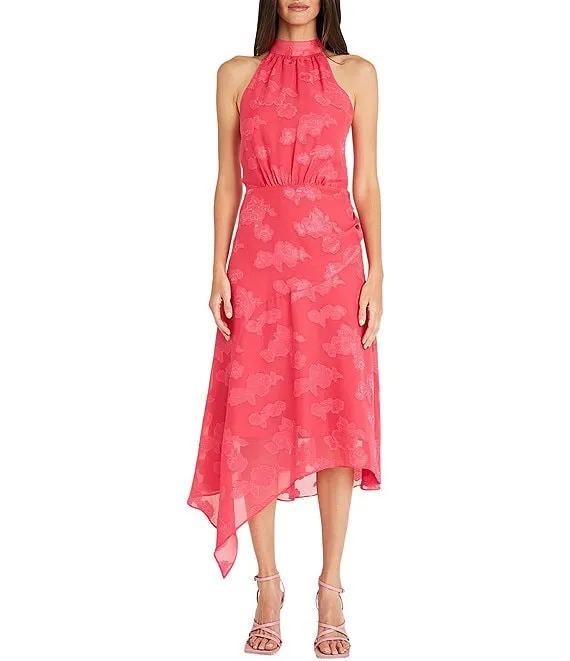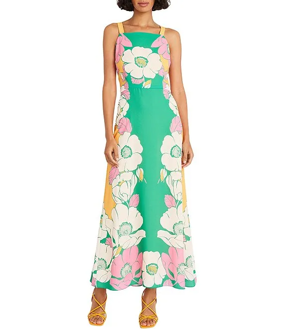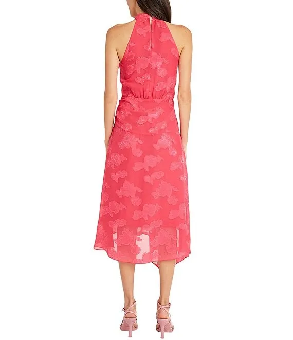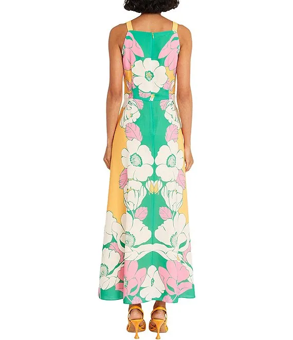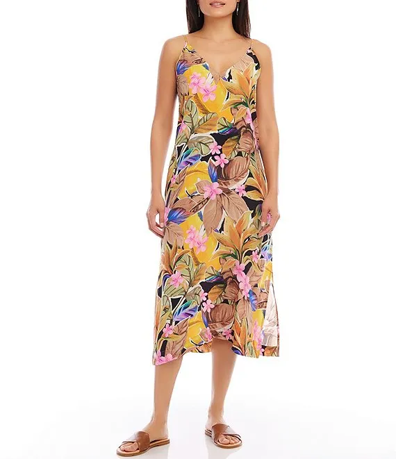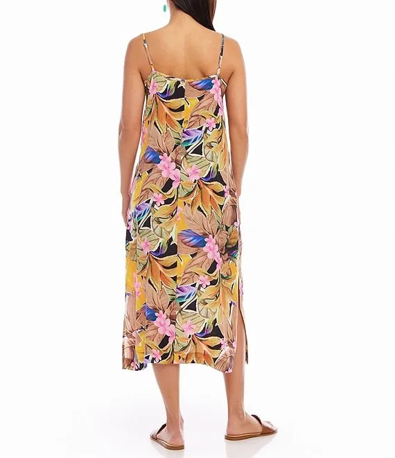 Karen Kane Tropical Floral Print V-Neck Sleeveless Side Slit Midi Dress