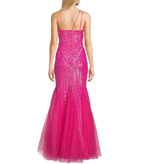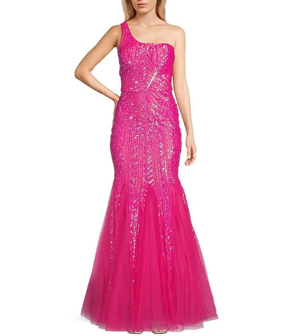 One Shoulder Sequin Mermaid Gown