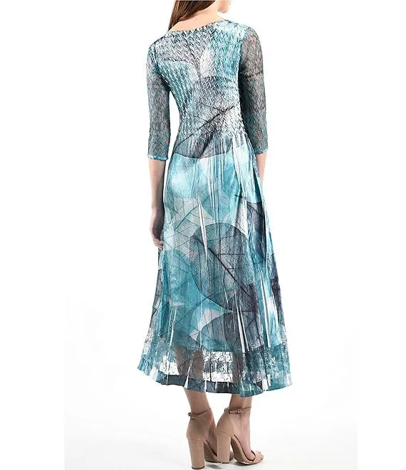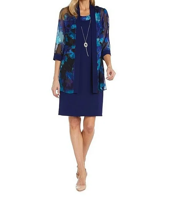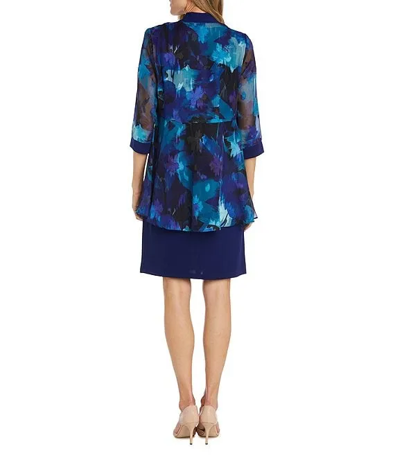 3/4 Sleeve Crew Neck Printed 2-Piece Jacket Dress