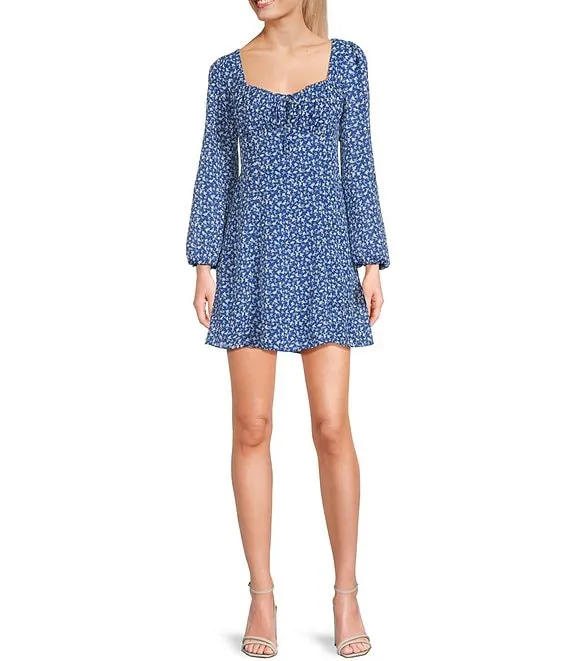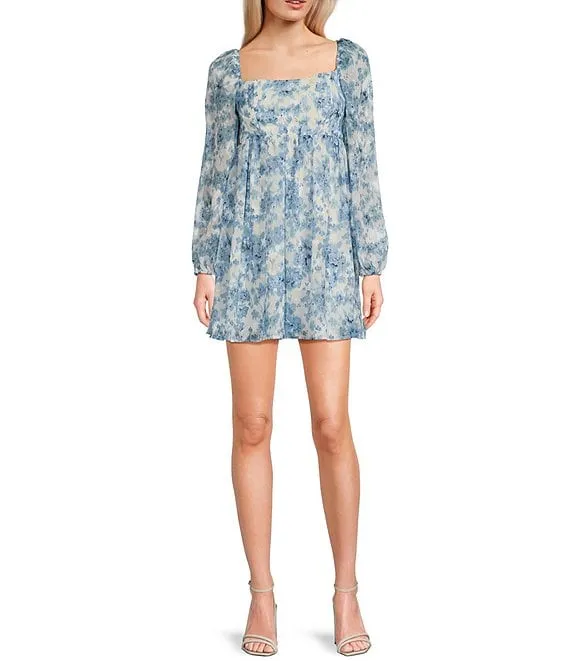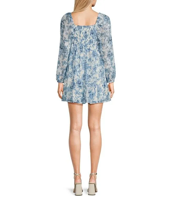 Long Sleeve Square Neck Floral Printed Dress