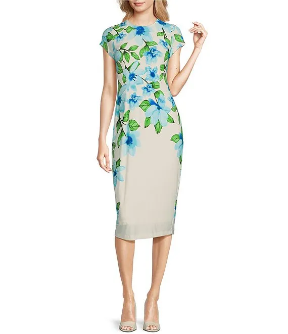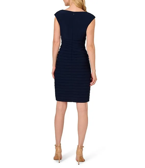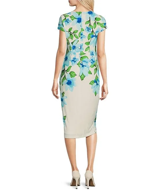 Adrianna Papell Stretch Jersey V-Neck Cap Sleeve Banded Sheath Dress