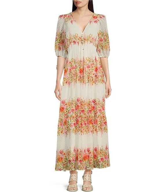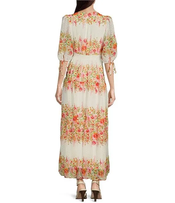 Taylor Floral V-Neck Smock Waist Elbow Length Sleeve Maxi Dress