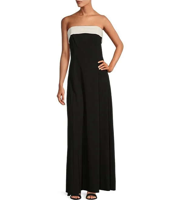 Sleeveless Strapless Neck Scuba Crepe A-Line Maxi Dress