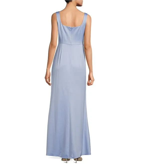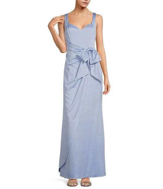 Adrianna Papell Satin Sweetheart Neck Sleeveless Tie Waist Draped Gown