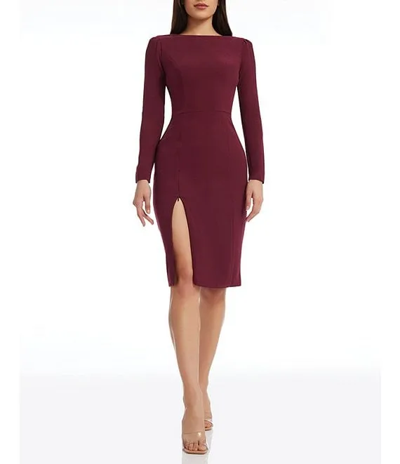 Nadia Long Puffed Shoulder Sleeve High Neck Sheath Dress