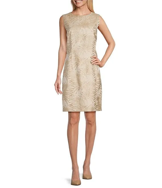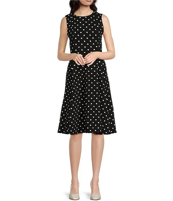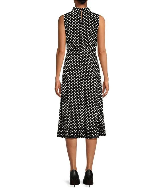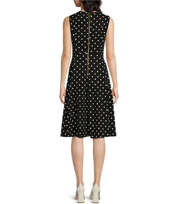 Calvin Klein Polka Dot Scuba Crepe Sleeveless Crew Neck Midi Dress