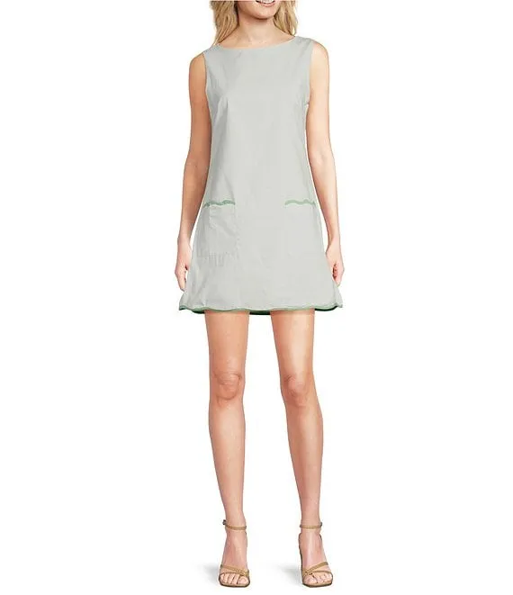 x SARAH & MOLLY Cotton Poplin Boat Neck Sleeveless Shift Mod Mini Dress