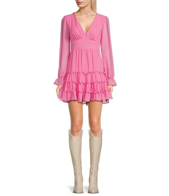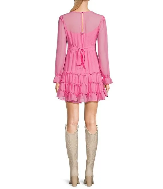 Long Sleeve Ruffle Tiered A-Line Dress