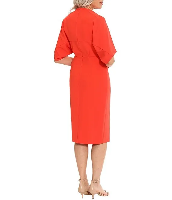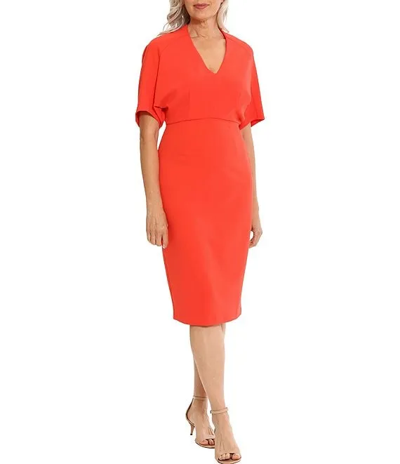 Short Sleeve V-Neck Scuba Crepe Sheath Dress