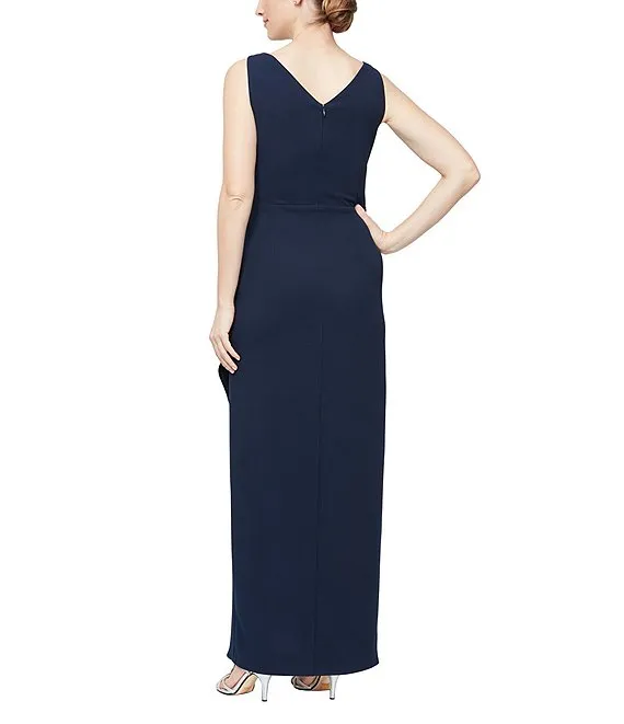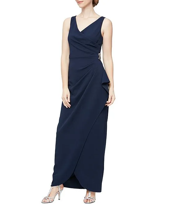 Sleeveless Surplice V-Neck Embellishment At Waist Crepe Gown